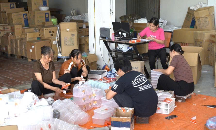 Nhân viên tổng kho Hatoky đang đóng hàng để giao cho khách nhập sỉ